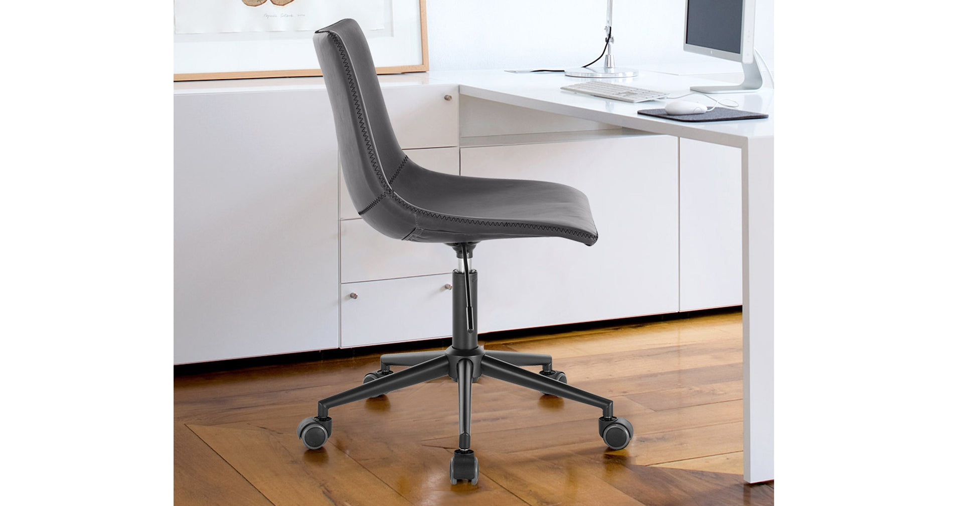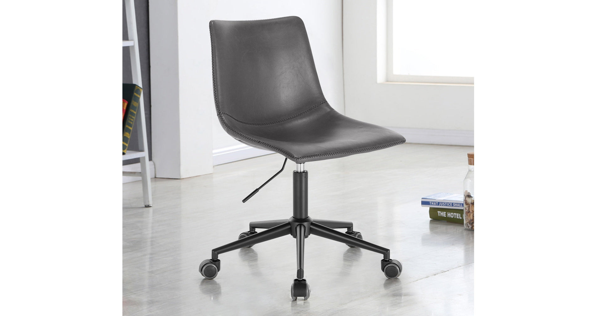 La sedia da scrivania Paxton, dal design intelligente, è la tua arma segreta per creare uno spazio di lavoro elegante, confortevole e produttivo. Progettata per la funzionalità giorno dopo giorno, presenta una seduta scolpita con uno schienale alto e un rivestimento in similpelle di qualità con eleganti cuciture a sella rinforzate. Questa sedia da scrivania offre una robusta base in acciaio saldato con verniciatura a polvere nera opaca anti-scheggiatura, ruote rivestite e una comoda leva per alzare o abbassare la seduta, per un'ergonomia ottimale.