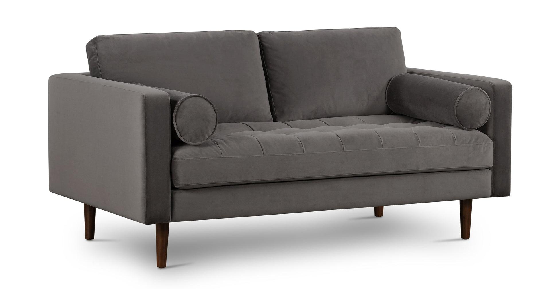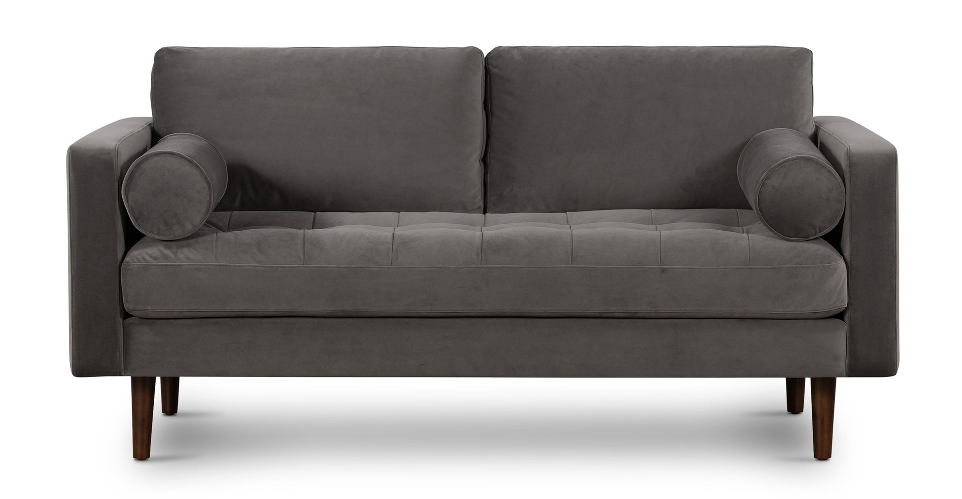 Caratterizzato da linee pulite, eleganti cuscini e un'elegante seduta trapuntata, il nostro divano da appartamento in tessuto Napa è raffinato come pochi. Versione rivestita in tessuto del nostro famoso divano in pelle, questo piccolo pezzo offre uno stile di lusso unico con schienale in misto piuma, imbottitura in schiuma ad alta densità, resistente supporto in fettuccia Pirelli e una struttura in legno con angoli bloccati per una maggiore resistenza. Per non essere da meno, le sue eleganti gambe affusolate in una ricca finitura noce sono il brillante dettaglio finale di questo set perfetto per l'appartamento.