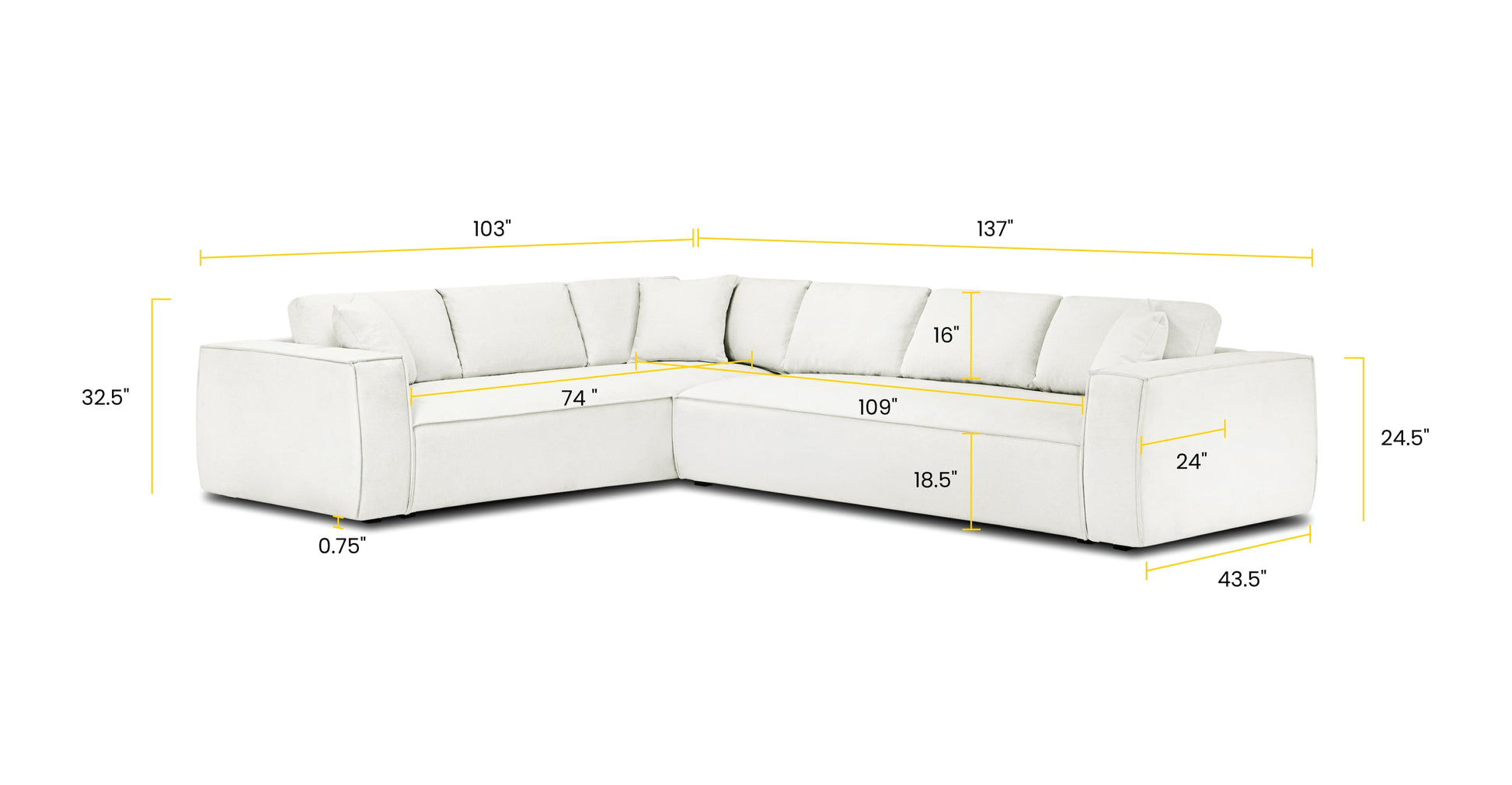 Larghezza interna del sedile: 74''W (divano) 109''W (divano a due posti)