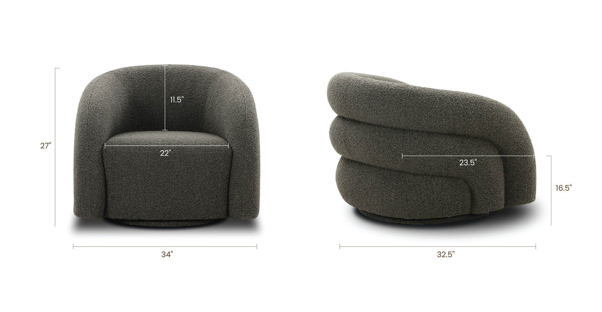 Dimensioni del sedile: 22'L x 23,5'P x 16,5'A